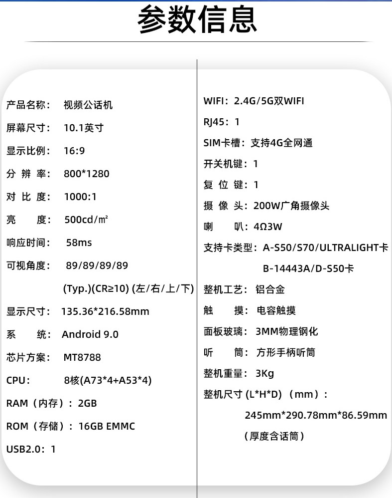 適用場景:10.1寸視頻公話機 校園視頻電話機 微信視頻電(diàn)話(huà)機