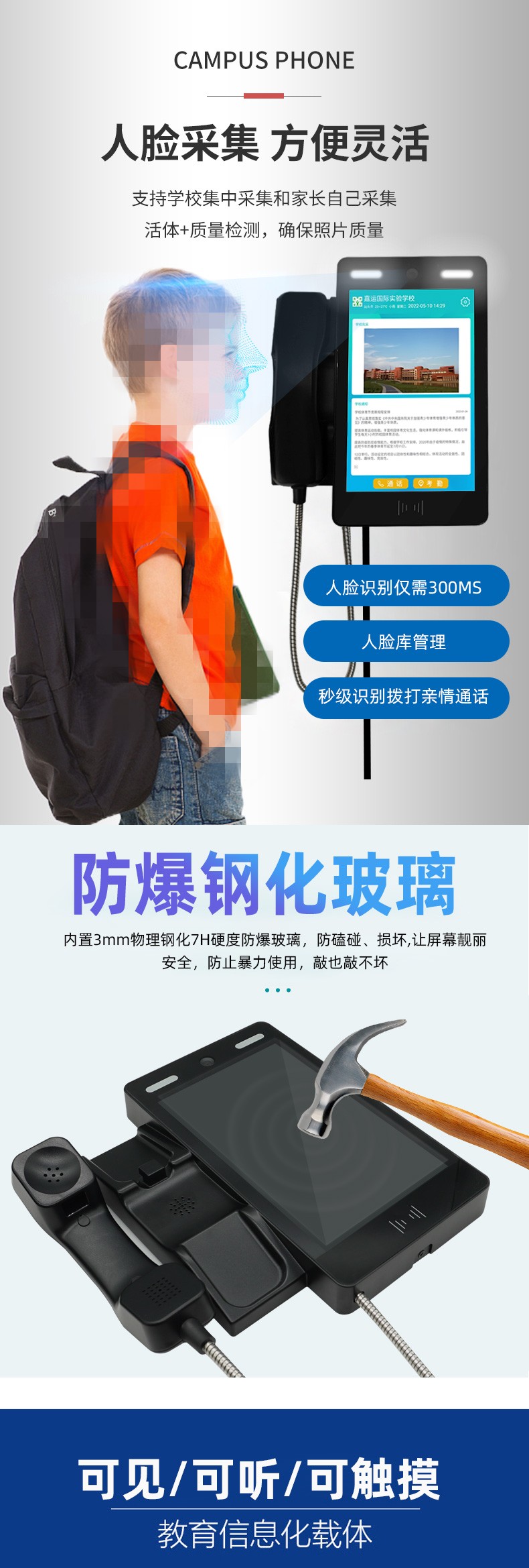 校(xiào)園:學生可通(tōng)過視頻公話機身份認證後可以撥打親(qīn)情號碼電話或視頻通話(Volte),家長可以手機直接接聽,極大提升家校溝(gōu)通效率和體驗