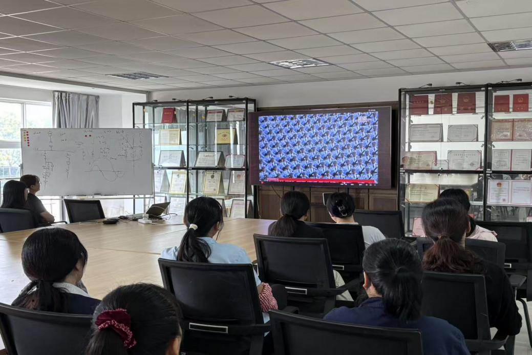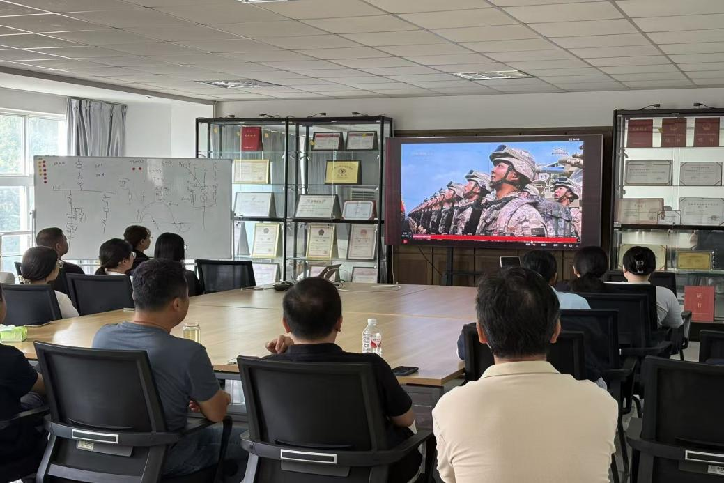 徽(huī)電科技組織觀看紀念抗戰勝利80周(zhōu)年閱兵活動