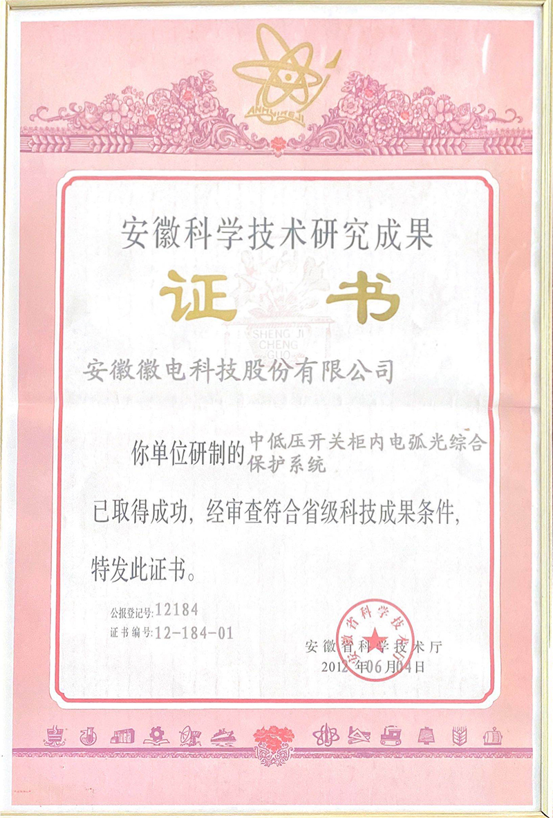 安徽科學技術研究成果證書