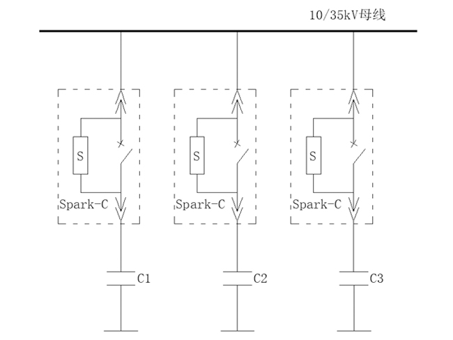 并联补偿电容(róng)器组投入时产生高达(dá)10~20倍合闸涌流,大幅缩短电(diàn)容使用寿命;分闸时断路器重燃产生高达6~7倍过电压,严重影响系统运行和设备安全。10kV Spark-C相控柜提供优异(yì)的单组电(diàn)容器/背(bèi)靠(kào)背电容器组投切解决方(fāng)案,适用(yòng)于工业及电力系统的无功补偿系统,如下图。