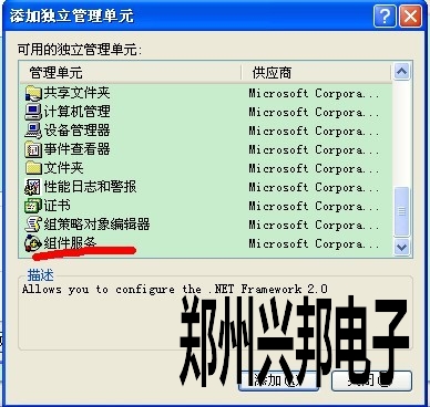 把光標點一下組件服(fú)務(wù),點添加,然後關閉,如下圖