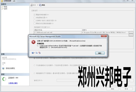 我們軟件的信息都存在(zài)數據庫中,當(dāng)我們重裝係統(tǒng)或者更換電腦(nǎo)時,我們隻要把數據庫備份,還(hái)原一下就可以。但還原有時候會(huì)報(bào)如下錯誤: