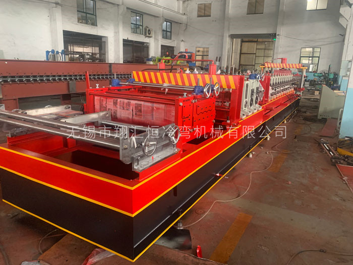 成型設備由手動供料裝(zhuāng)置,鏈條傳動裝置,成型輥道及主機,成型後液壓折彎+切斷裝置,成品(pǐn)托料裝置等(děng)組成。